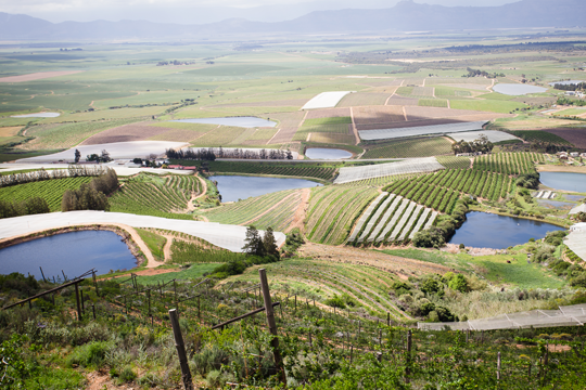 De flesta av Sydafrikas vingårdar är belägna i Western Cape, den sydvästra hörnan av landet. Närheten till vattnet och den svala vinden The Cape Doctor bidrar till att sänka temperaturen avsevärt från denna annars ganska varma del av världen.