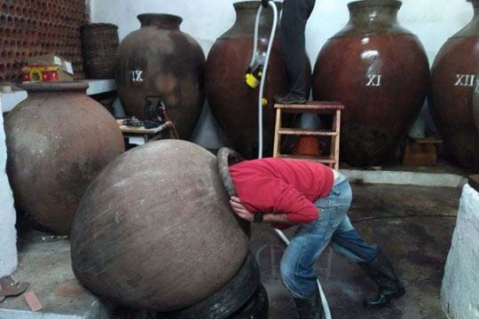 Innan amfororna hos Aconchego da Aldeia används bestryks de med ett skyddande lager av tallkåda, bivax och olivolja som kallas för Pezga.