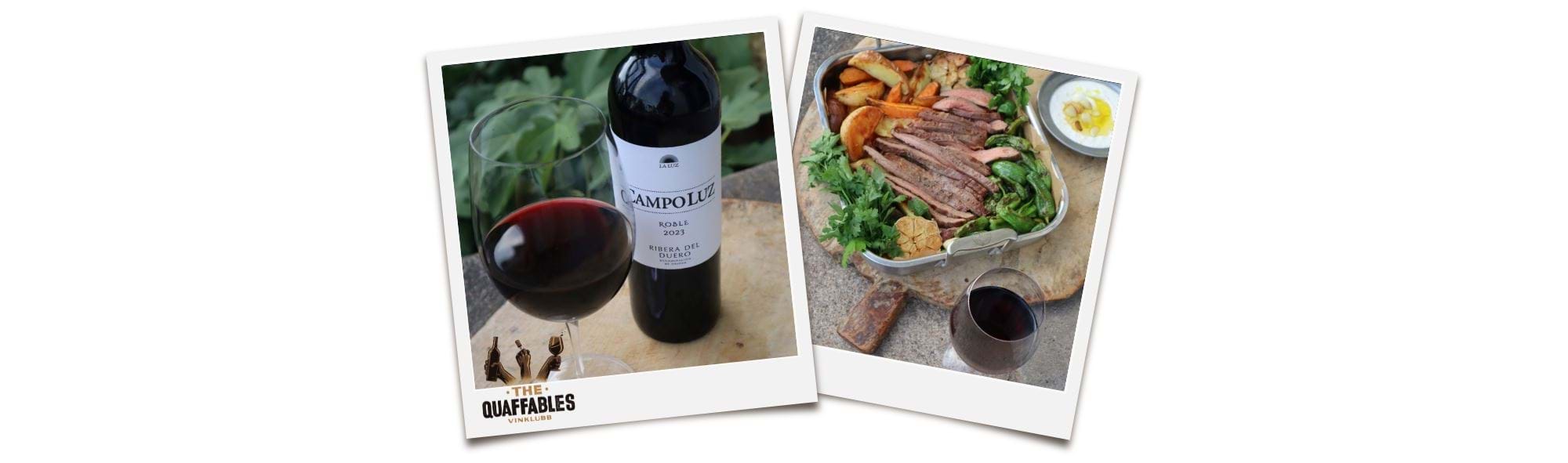 Sista dagarna på semestern grillar vi gärna flankstek och serverar grillbricka med ugnsbakad bakpotatis och sötpotatis, pimentos de padrons och sås med salladsost och rostad vitlök till ett rött kraftpaket. I glaset det spanska fyndvinet Campo Luz Roble 2023 som bjuder på smak av mörka körsbär och röda plommon, kryddor, en hint av kardemumma samt eleganta fattoner.